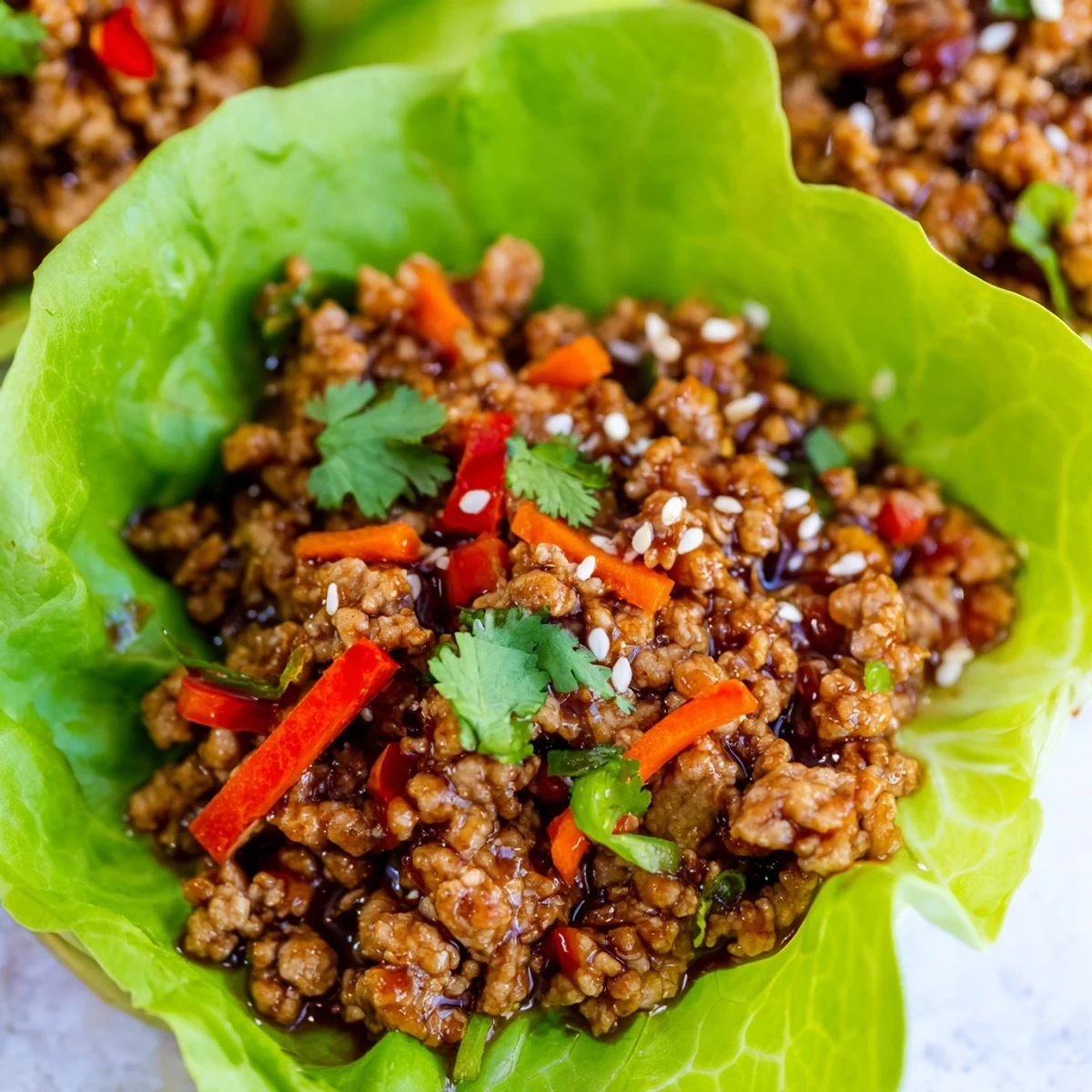 These vibrant lettuce bowls feature lean ground turkey cooked with aromatic garlic, onions, and bell peppers, then seasoned with a savory blend of soy sauce, hoisin, and rice vinegar. The mixture gets finished with shredded carrot and diced cucumber for refreshing crunch.