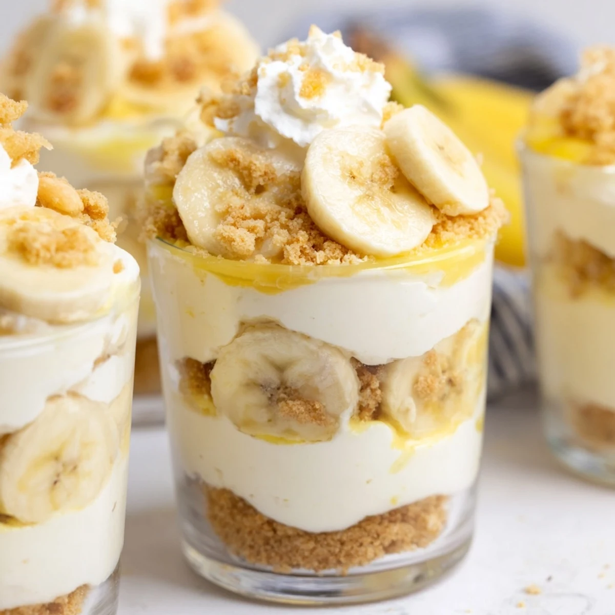 Refrigerate the cups for at least 2 hours to allow the layers to set properly and flavors to meld together. For the best texture and taste, they can be made up to 24 hours in advance, though fresh banana toppings should be added just before serving to prevent browning.