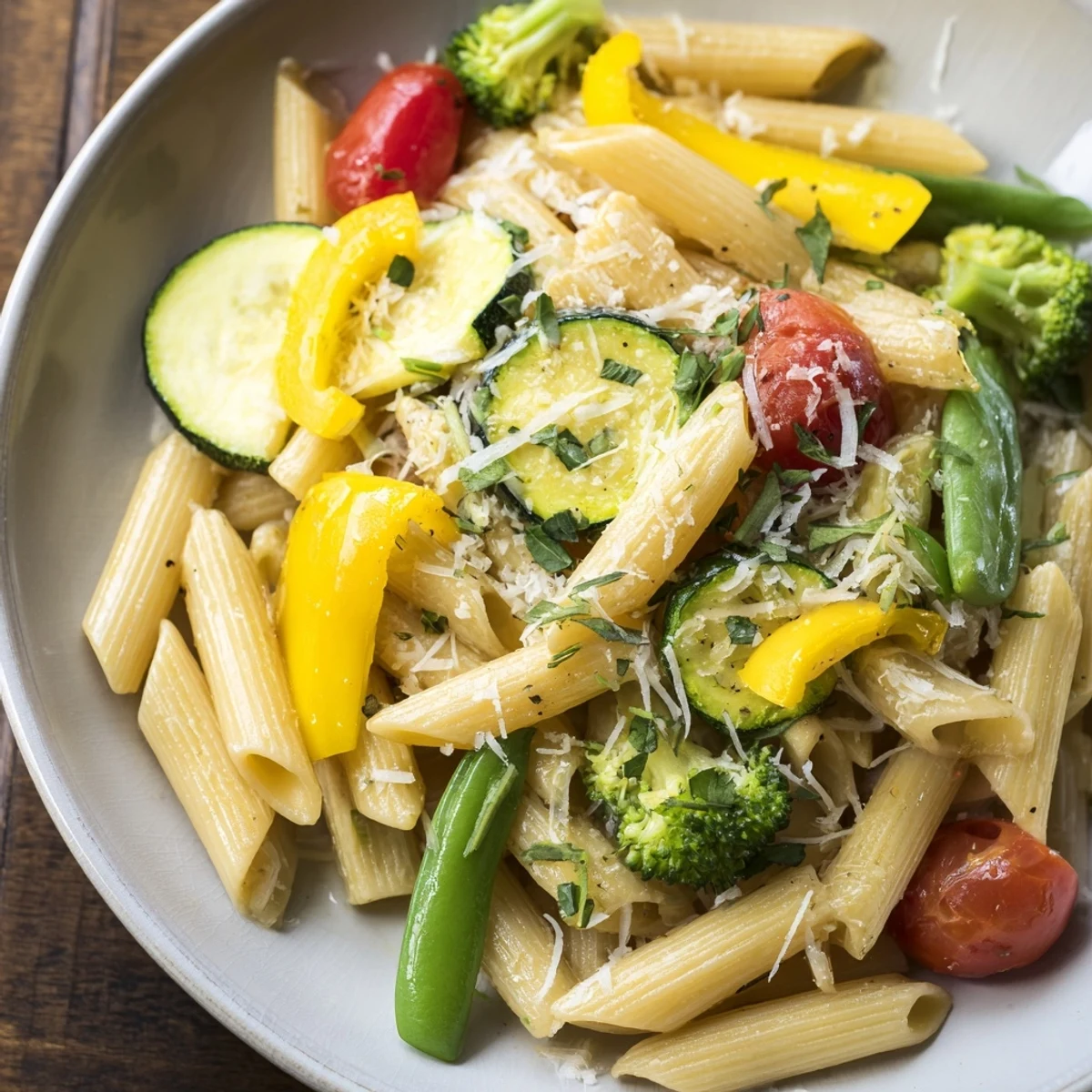 This classic Italian dish combines perfectly cooked pasta with an array of fresh spring vegetables including zucchini, bell peppers, cherry tomatoes, and broccoli. The vegetables are sautéed until tender-crisp, then tossed with the pasta in a light sauce made with olive oil, garlic, lemon, and vegetable broth. Fresh herbs and Parmesan complete this vibrant, wholesome meal that comes together in just 40 minutes.